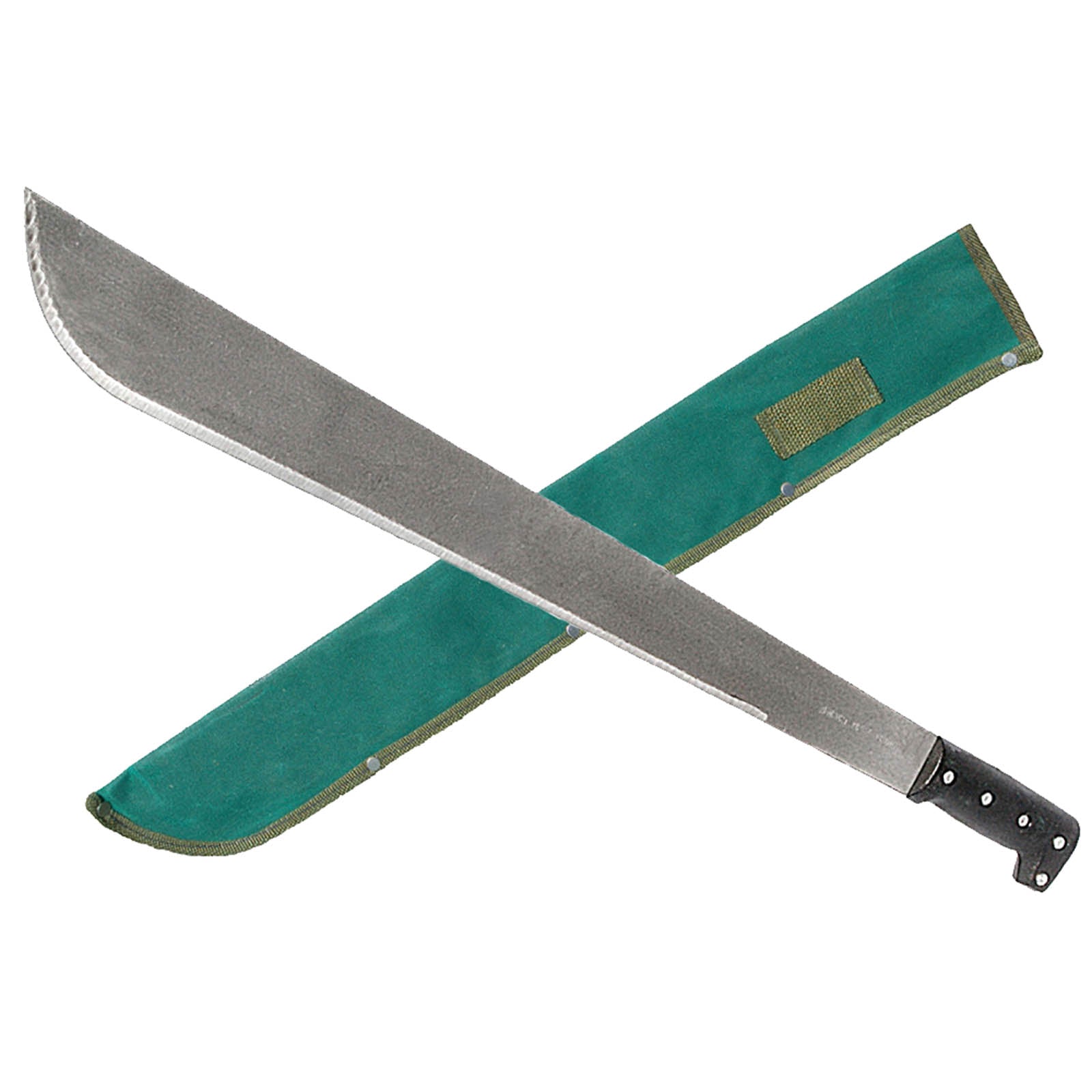 The Zenport MP18 tough 18-inch super carbon steel blade machete with 4.75-inch non-slip durable PVC handle, for cutting brush, saplings and vines. A sheath is included for storing the blade in when not in use.