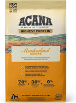 With the highest protein offering in ACANA® pet foods, our Highest Protein Meadowland Recipe is rich with 70%* quality animal ingredients like free-run chicken and turkey**, wild-caught and sustainably farmed fish, balanced with 30%+ fruits, vegetables, and botanicals, many delivered daily. Artificial colors, flavors or preservatives are never added in our kitchen.