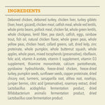 - First three ingredients are fresh or raw chicken and turkey; nutrient-dense and high in protein. Our fresh ingredients use refrigeration as the sole method of preservation and our raw ingredients are frozen at their peak freshness.