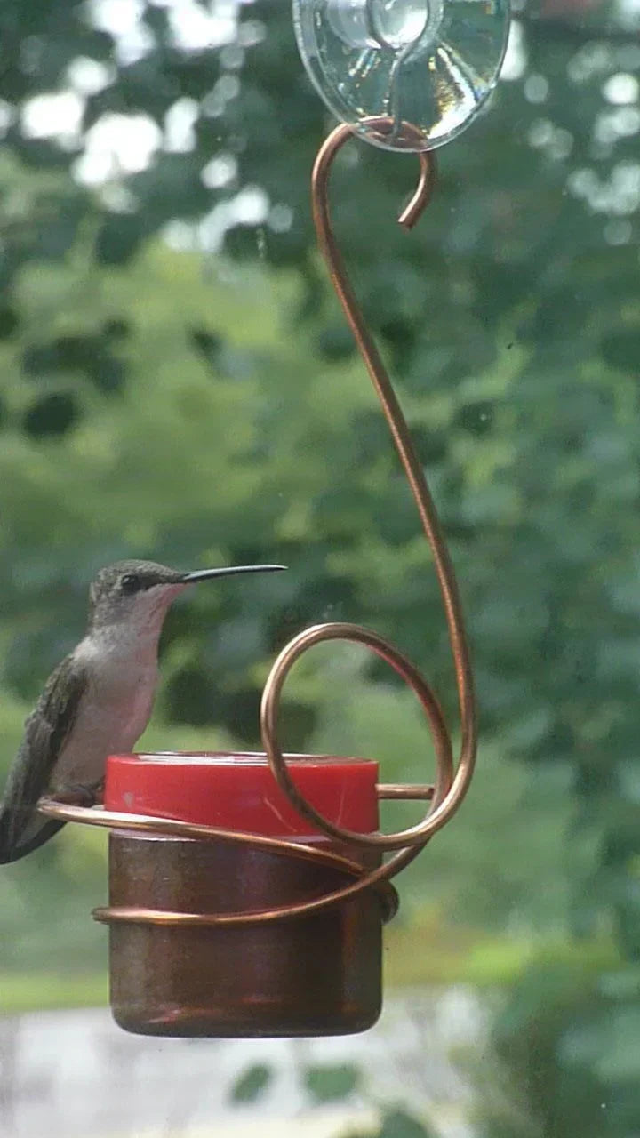 Enjoy your hummingbirds up close! This feeder can be mounted to a window with the included suction cup. My design discourages bees and wasps, and each set comes with two dishwasher-safe plastic feeding cups to allow for easy changing out of food.