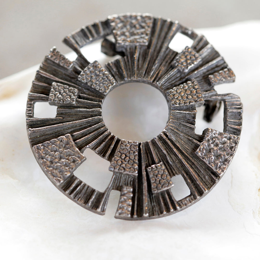 Unique Round Metal Pewter Pin.