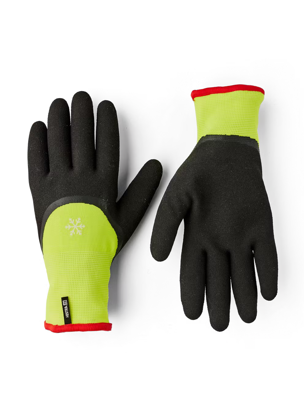 A flexible all-purpose glove with excellent grip when working outdoors in cold weather. Seamlessly knitted in durable acrylic, with a soft, warming terry knit on the inside. Latex coating over the palm, fingers and knuckle section provides good grip while also protecting against wind, wet and contact cold. Hi-Viz yellow for maximum visibility during night work. Designed for jobs that require high precision movements in wet, cold weather.